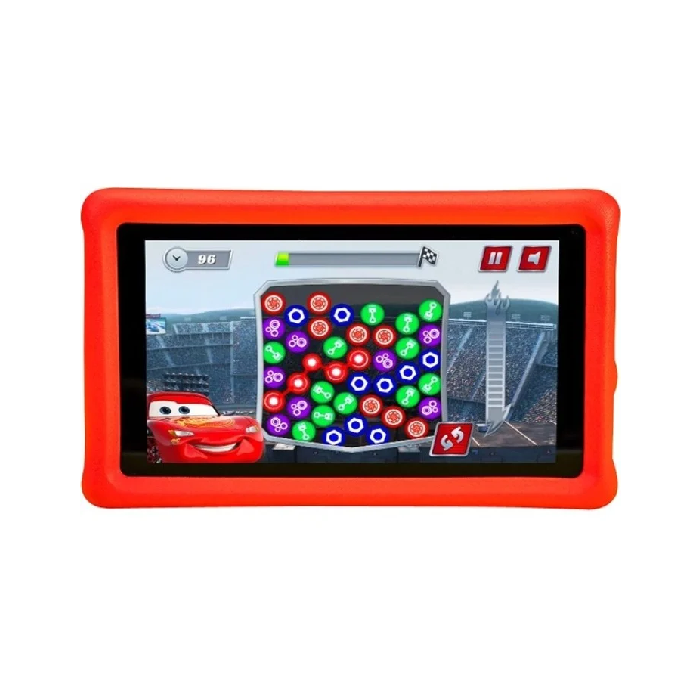 Child-Friendly Design: Features a childproof protective case designed for small hands, an integrated blue light filter for eye protection, and a shockproof bumper with a Cars logo.
